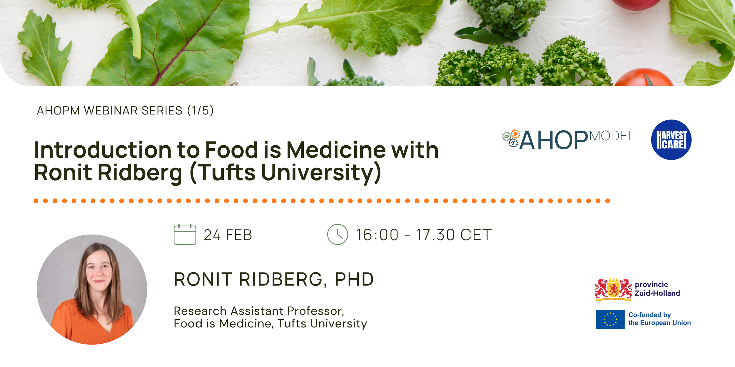 For this first session, we welcomed Dr. Ronit Ridberg from the Food is Medicine Institute at Tufts University. The institute integrates research, policy, and education to advance the practical implementation of Food is Medicine. During the webinar, Dr. Ridberg provided an overview of how the field is evolving, the current scientific evidence, and the key questions involved in translating these models to other contexts, including Europe and the Netherlands.